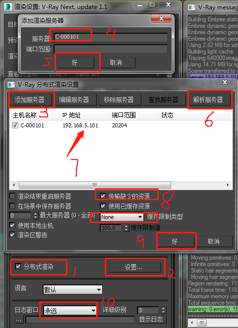 参与分布式渲染的客户端电脑上V-Ray版本必须一致,但客户端的3dsMax版本可以不一样。