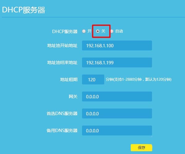 重新登录到路由器2的设置页面后,找到“DHCP服务器”的选项,将其关闭掉。