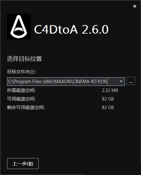 1.运行C4DtoA-2.6.0-win-R19.exe,安装路径选C4D安装路径