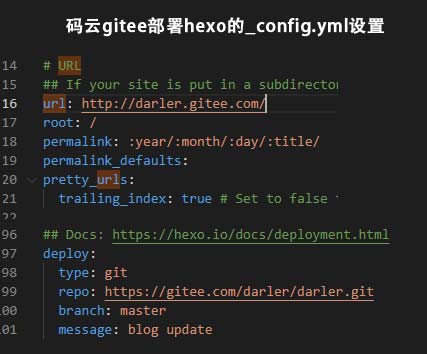 - 用编辑器打开你的blog项目,修改_config.yml文件的一些配置(冒号之后都是有一个半角空格的):