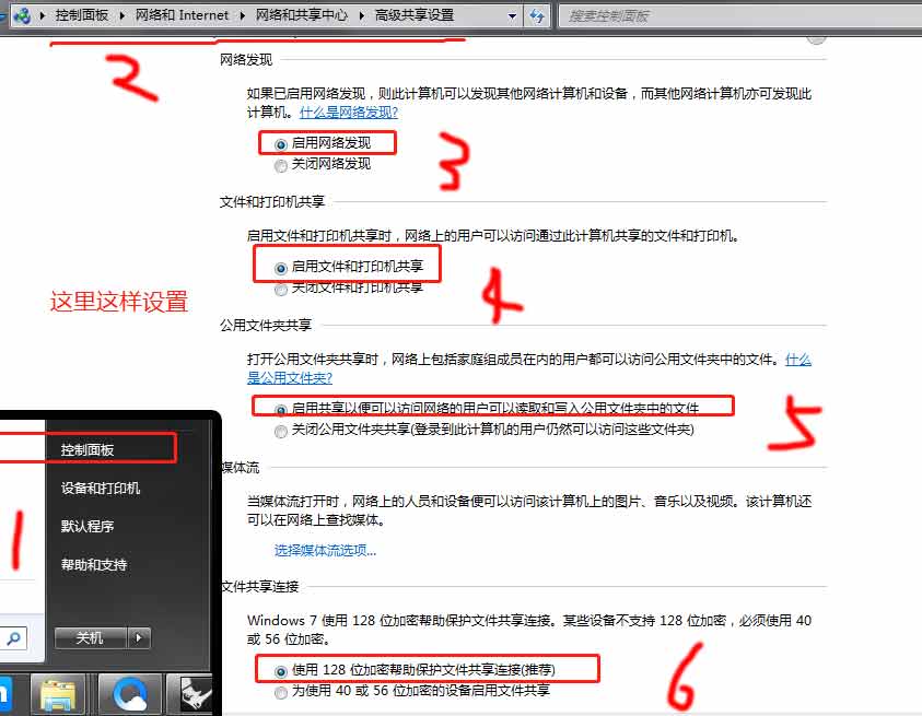 进入控制面板-高级共享设置,具体设置和步骤看图,很详细。